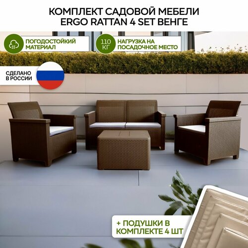 Комплект мебели Ergo Rattan 4 set с бежевыми подушками