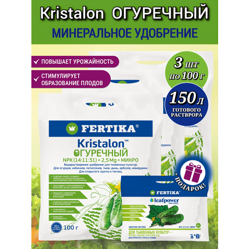 Удобрение Фертика Кристалон для огурцов и кабачков, в открытом грунте и теплицах 100 г, 3 шт