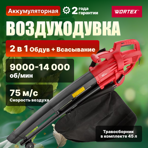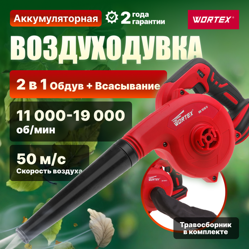 Воздуходувка аккумуляторная WORTEX BB 2018 D С аккумулятором и зарядным устройством (1333739) красный, черный, красный