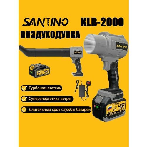 Воздуходувка SANTINO, 2000Вт, бесщеточный двигатель, 7 м³/мин, аккумулятор 48В, 10Ач