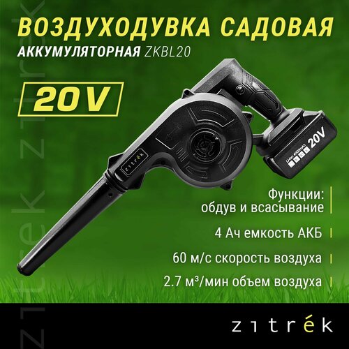 Воздуходувка садовая аккумуляторная ZITREK ZKBL20 (20В, 4.0 Ач Li-ion аккум. 1шт, зу)