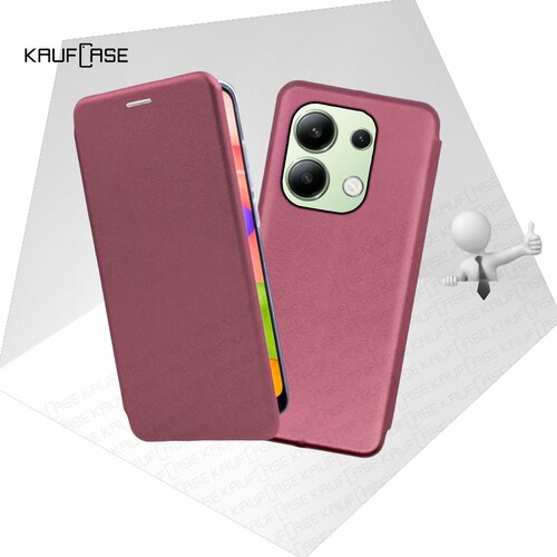 Чехол книжка для телефона Xiaomi Redmi Note 13 Pro 4G/ Poco M6 Pro (6.67"), бордовый. Текстура под кожу