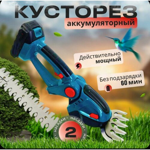 Аккумуляторный кусторез с 2 насадками для кустов и газона