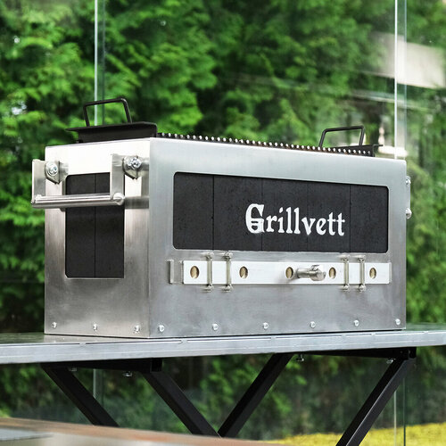 Настраиваемая комплектация: В комплекте предусмотрена сетка из нержавеющей стали и планки с засечками для шампуров, дополнительно возможно доукомплектовать Grillvett Mini Yaki стальной решеткой-гриль, которая особенно хорошо подходит для жарки стейков. Качество материалов: Grillvett Mini Yaki изготовлен из прочных материалов, включая жаростойкую нержавеющую сталь. Вы можете использовать гриль в любое время года при любой погоде и он прослужит вам долгие годы. Высокая термоаккумуляция : Конструкция с корпусом из шамотной плиты