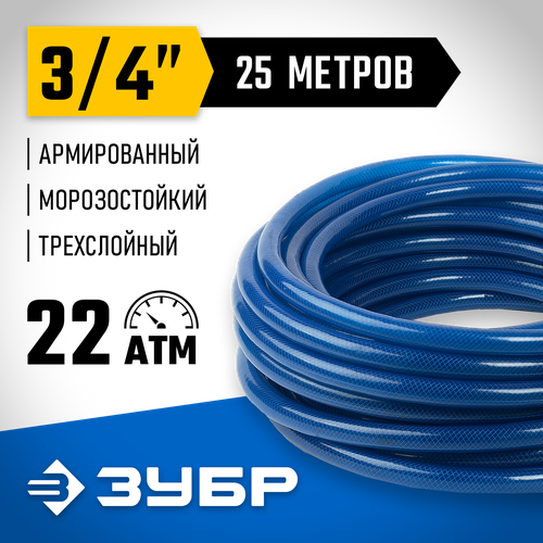 ЗУБР 3/4″ 25 м, 22 атм, трёхслойный, армированный, поливочный шланг, профессионал (40312-3/4-25)