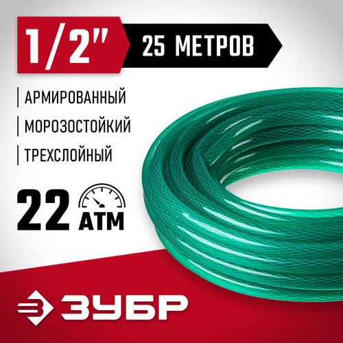 Шланг ЗУБР поливочный, из медицинского ПВХ, армированный, 1/2", 25 м