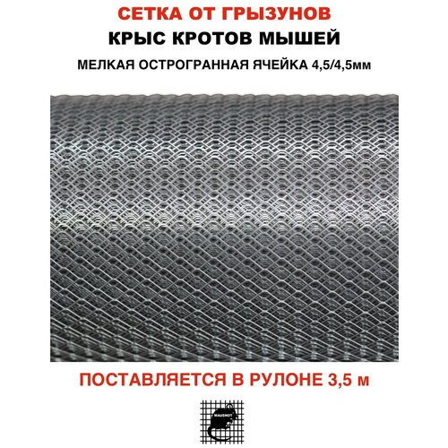 Сетка от кротов, мышей, крыс, змей Длина: 3,5 метра Ширина: 1метр Ячейка 4,5х4,5мм Поставляется в рулоне.