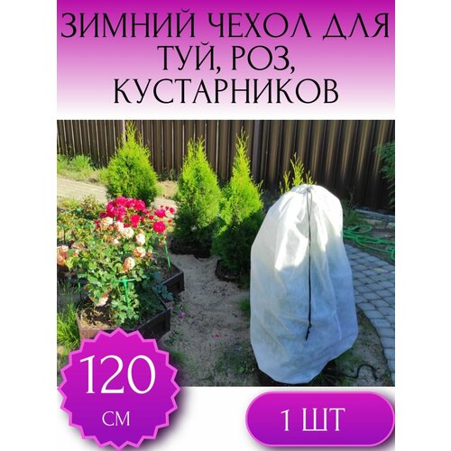 Зимний чехол на затяжках для туй и можевельников, для роз, для кустов и деревьев размер 120*80 см, 1 шт.