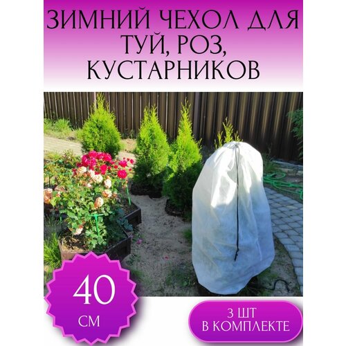 Зимний чехол на затяжках для туй и можевельников, для роз, для кустов и деревьев размер 35-40*80 см, 3 шт в комплекте