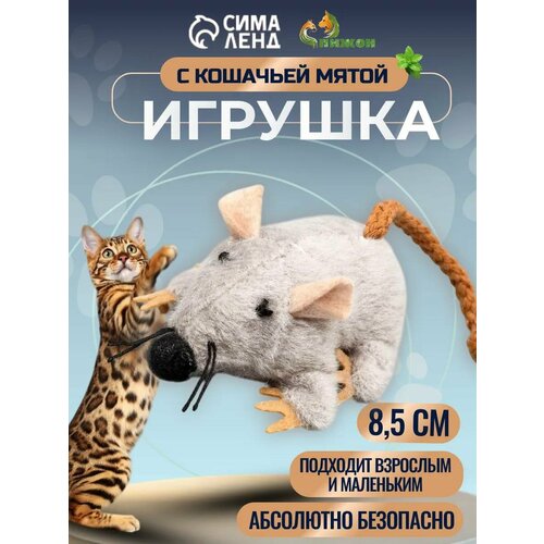 Мышь Пижон "Грызун", для кошек, дерево/текстиль, 8,5 см, серый