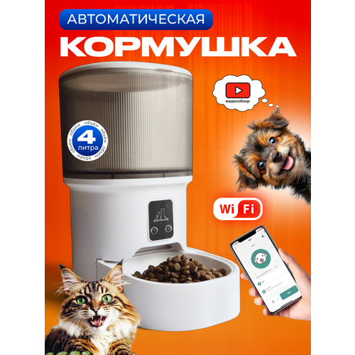 Автокормушка LuckyPaws, для кошек и собак, Wi-Fi, до 4 литров, белая musen