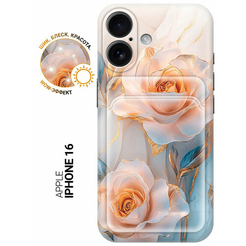 Силиконовый чехол на Apple iPhone 16 с принтом "Белые розы на мраморе" с карманом для карты