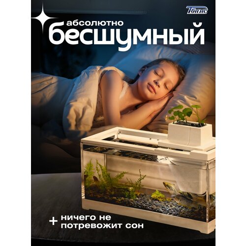 белыйМини Аквариум для рыбок с подсветкой овальной формы. Основная функция - уникальная система самоочистки. Объемом четыре литра. Благодаря устройству циркуляции водных потоков , создается, принцип подводного течения. Акваферма выполнена из Акрила, устойчивого к царапинам и сколам. Модель с 3х уровневым фильтром , который обеспечивает очистку воды. Для полного цикла самоочистки необходимо посадить растение, в специальную емкость (корзинку) и разместить в слоте на крышке аквариума Необходимо использовать полный цикл аквафермы для лучшей фильтрации воды. Аквариумные наборы в комплекте. Подойдет для петушков, гуппи, данио или креветок. Аквариум бесшумный, что делает его идеальным ночником . Клиентская поддержка , мы всегда рады помочь в вопросах запуска и ухода за рыбками(чат с поставщиком или вопросы к товару).