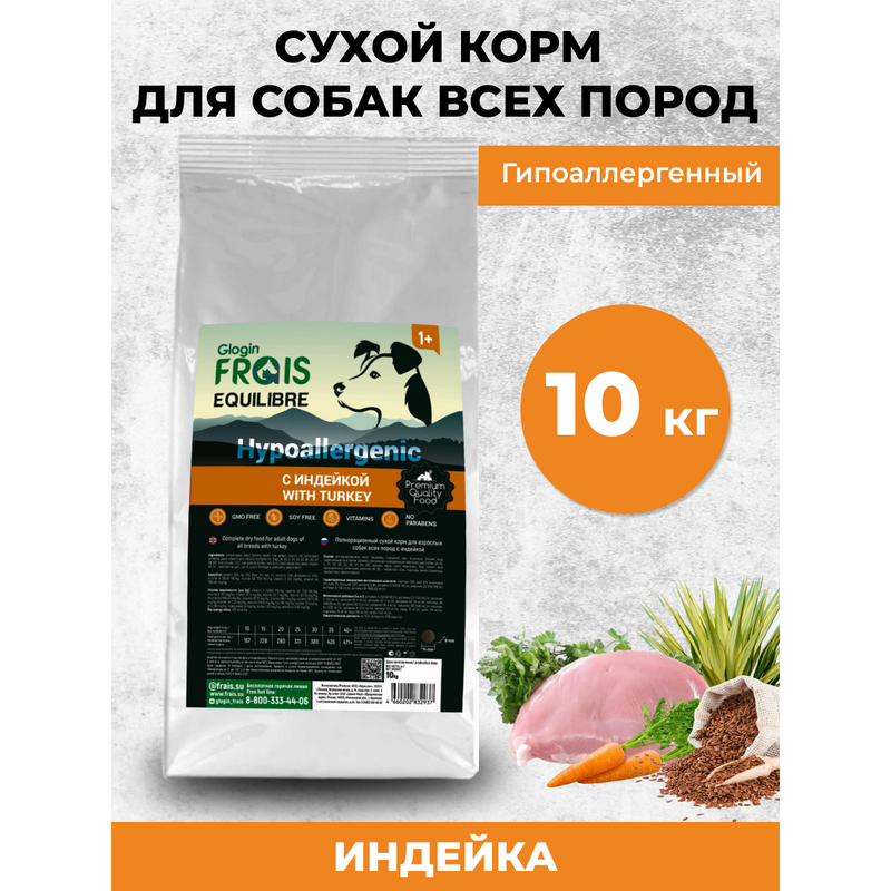 Cухой корм для собак Frais EQUILIBRE HYPOALLERGENIC с индейкой, 10 кг 600013061389