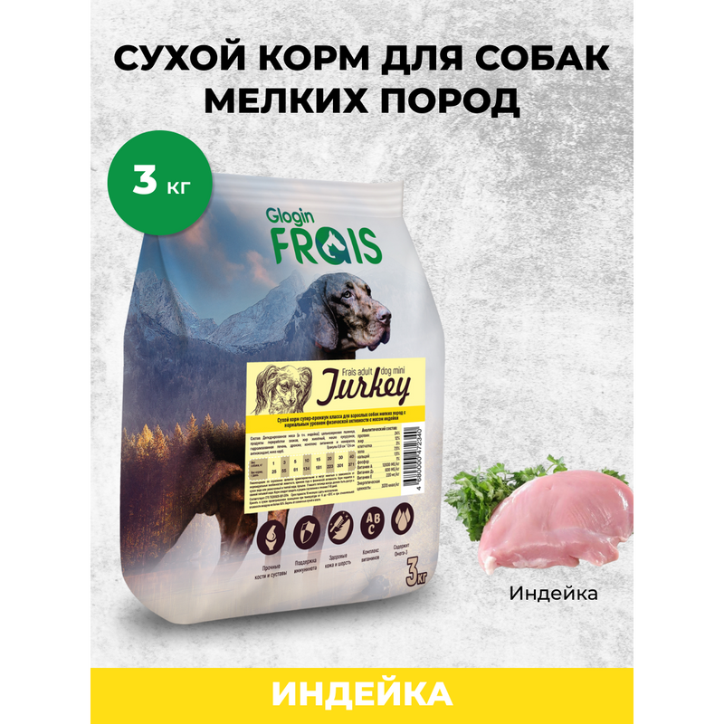 Сухой корм для собак FRAIS ADULT DOG MINI индейка, 3 кг 600004765395