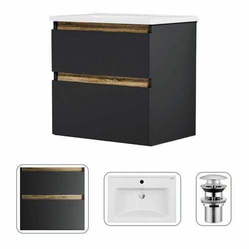 Тумба с раковиной в ванную AM.PM с донным клапаном черный, подвесная, 60 см