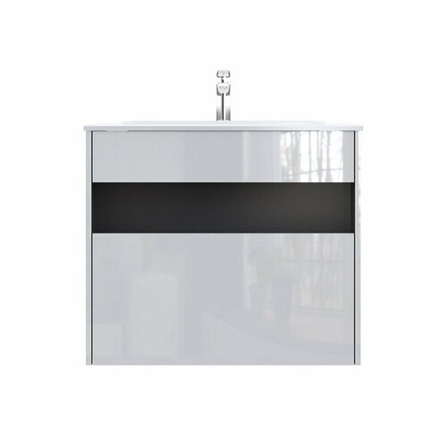 Тумба с раковиной в ванную AM.PM Gem M90-FHX0602-F85A02122 со смесителем X-Joy черный, подвесная, 60 см, 2 ящика push-to-open, белый глянец, эмаль