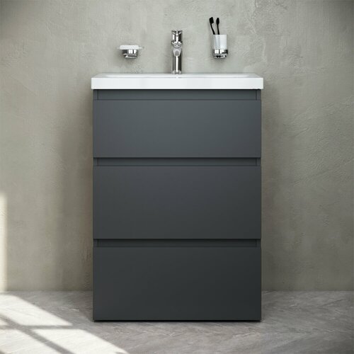 Тумба с раковиной AM.PM Gem S 60 графит матовый, напольная, с 3 ящиками