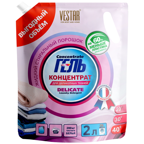 Гель для стирки Vestar для деликатных тканей, 2 л, 6 уп.