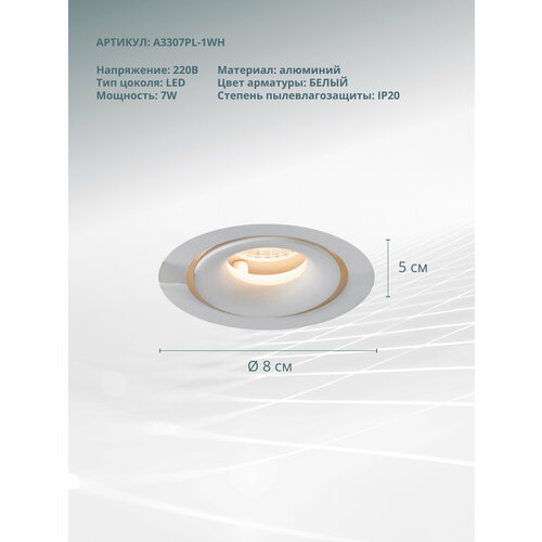 Светильник Arte Lamp Apertura A3307PL-1WH, LED, 7 Вт, 3000, теплый белый, цвет арматуры: белый, цвет плафона: белый