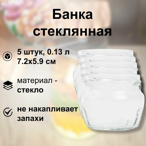 Банка "Мед" 0.13 л (5 шт), стекло, твист-офф 66 мм. Многоразовая емкость для консервации фруктов, ягод и овощей, подходит для длительного хранения меда, сухофруктов, варенья и других продуктов