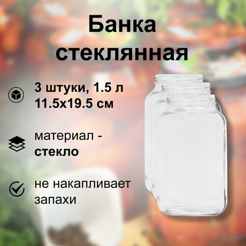 Классический дизайн банки 1.5 л прямоугольной формы из стекла высшего качества ТО-100. Емкость используется для консервации, засаливания, хранения пищевых продуктов.
