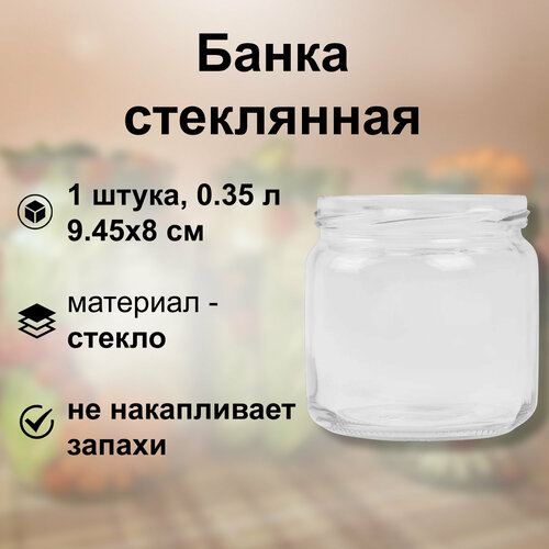 Банка стеклянная "Глория" 0.35 л, твист-офф 82 мм. Многоразовая емкость для консервации фруктов, ягод и овощей, подходит для длительного хранения меда, сухофруктов, варенья и других продуктов