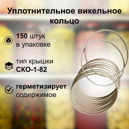 Уплотнительное викельное кольцо СКО, 82 мм, 150 шт в упаковке. Запасные вкладыши предназначены для жестяных и алюминиевых закаточных крышек, препятствуют проникновению воздуха внутрь банки