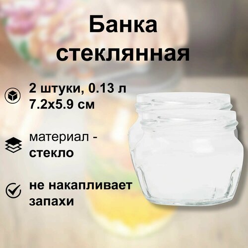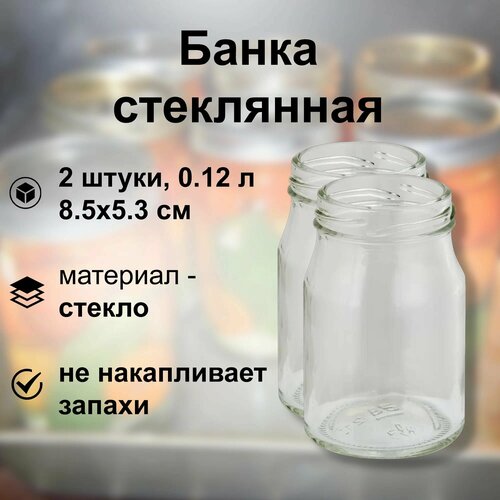 Банка "Аджика" 2 шт, стекло 0.12 л, твист офф 48 мм. Многоразовая емкость для консервации фруктов, ягод и овощей, подходит для длительного хранения меда, сухофруктов, варенья и других продуктов