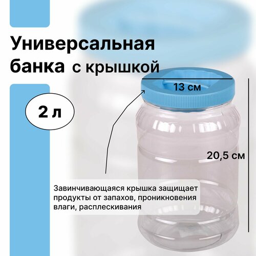 Универсальная банка с крышкой, 2 л, пищевой пластик, емкость для пищевых продуктов, для длительного хранения, транспортировки и расфасовки на продажу