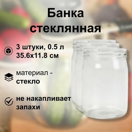 Банка стеклянная 0.5 л (3 шт), твист-офф 82 мм. Многоразовая емкость для консервации фруктов, ягод и овощей, подходит для длительного хранения меда, сухофруктов, варенья и других продуктов