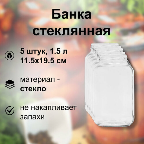 Банка стеклянная 1.5 л (5 шт), твист-офф 82 мм, 11.5x19.5 см. Многоразовая емкость для консервации фруктов, ягод и овощей, подходит для длительного хранения меда, сухофруктов, варенья
