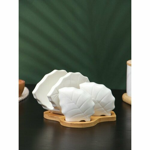 BellaTenero Набор для специй на деревянной подставке BellaTenero «Листья», 3 предмета: солонка 120 мл, перечница 120 мл, салфетница