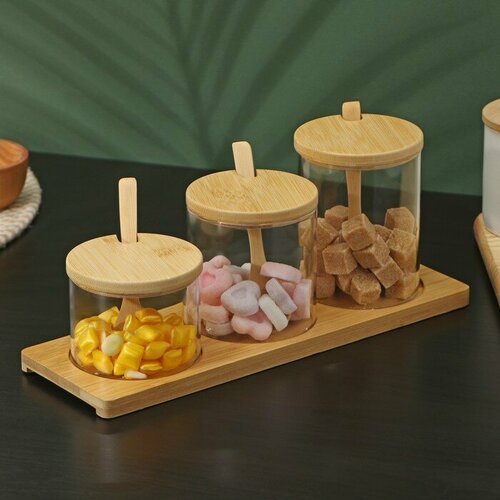 Набор банок для сыпучих продуктов на деревянной подставке Bella Tenero «Эко», 3 предмета: 3 банки с ложками 300 мл