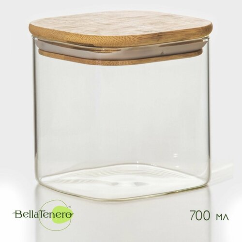 Банка стеклянная для сыпучих продуктов с бамбуковой крышкой BellaTenero «Эко», 700 мл, 8,5×15,5 см