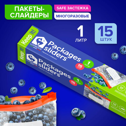 Пакеты для заморозки с застежкой Lomberta, 1 л 15 шт, зип пакеты для заморозки, упаковки, хранения