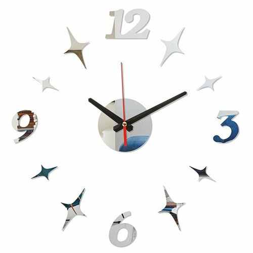 Часы-наклейка, серия: DIY, "Звезды", плавный ход, d-40 см, серебро 9605272