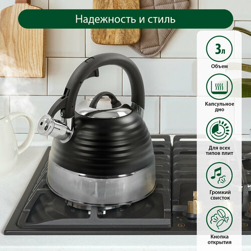 MARTA Чайник со свистком MT-3048 3 л, 3 л, Черный агат