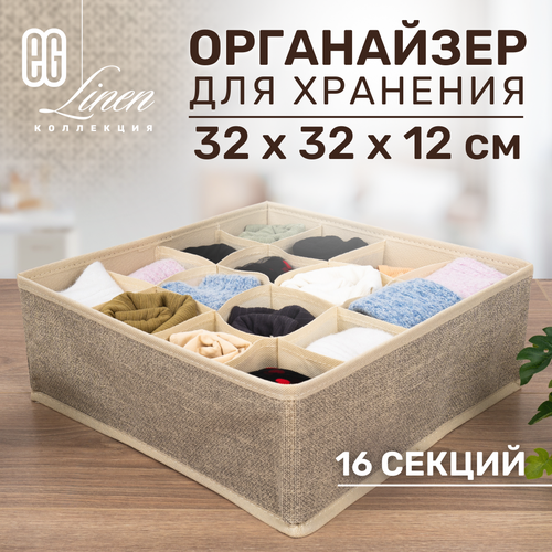 Органайзер для хранения Еврогарант для белья и аксессуаров, 16 секций, 32х32х12 см, linen