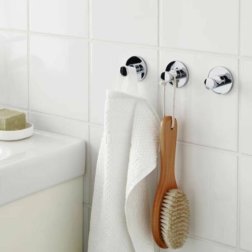 Крючки настенные самоклеящиеся для ванной IKEA SKOGHALL (скугхаль), хромированные, 3 шт в упаковке