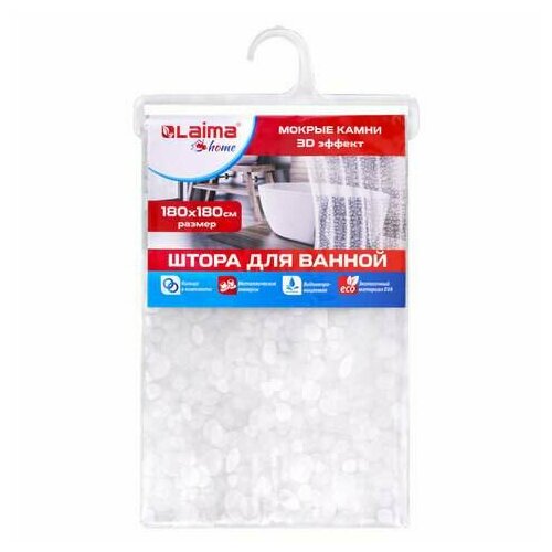 Штора для ванной комнаты WET STONES с 3D-эффектом водонепроницаемая, 180х180 см, LAIMA HOME, 608449 (арт. 608449)