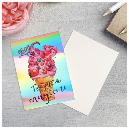 Открытка-валентинка с голографией «Ты моя сладость», 7,5 х 10 см