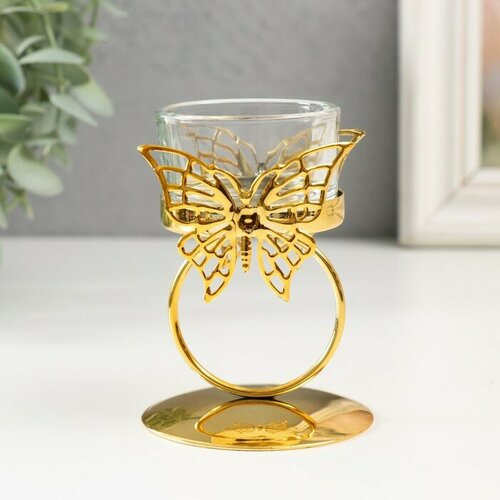 Подсвечник металл на 1 свечу "Бабочка и кольцо" d=5 см золото 6,5х6,5х9,3 см