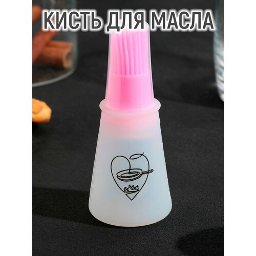 Кисть для масла «С любовью», 11.8 х 5.2 см, силикон, цвет розовый