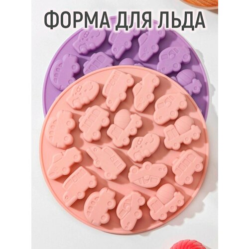 Форма силиконовая для льда и кондитерских украшений Доляна «Машинки», 12×1 см, 17 ячеек, цвет фиолетовый
