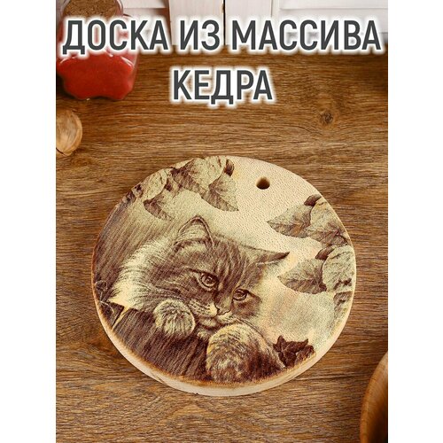Доска из массива кедра «Кошка», круглая, 18 × 18 см №187