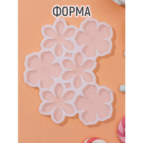 Форма силиконовая для леденцов «Цветочки», 14×12×0,7 см, 6 ячеек, цвет белый