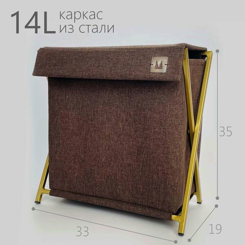 Корзина для хранения маленькая узкая с крышкой Коричневая на золотом