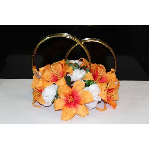 Свадебные кольца на машину "Вальс цветов" оранжевое оформление