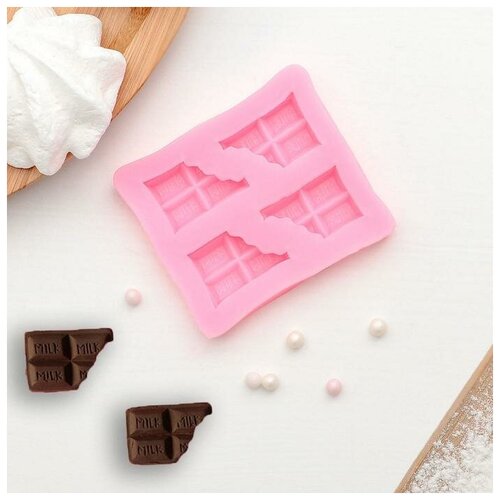Силиконовый молд «Плитка шоколада», 6,9×6 см, цвет розовый